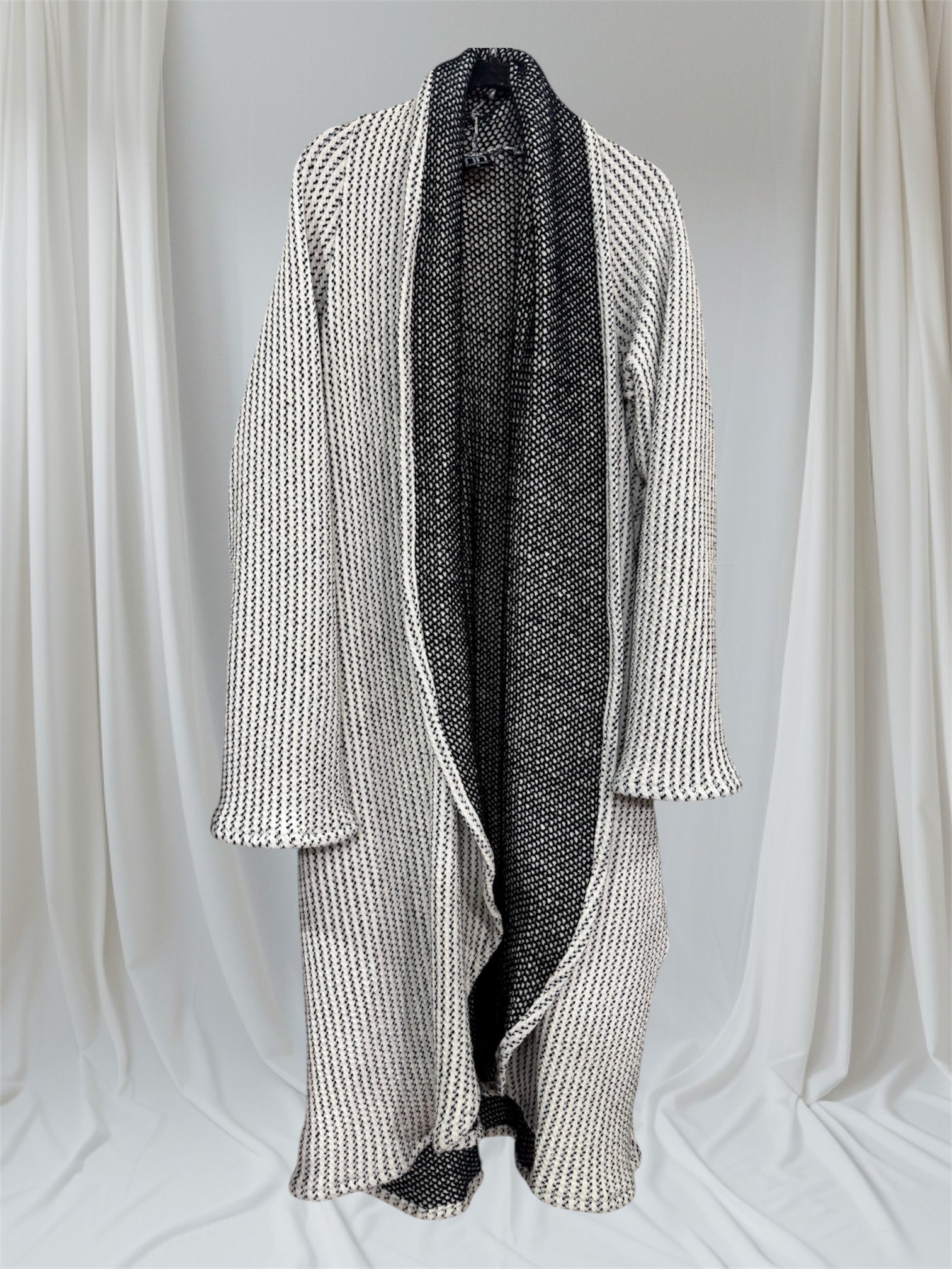 Designed for layering, travel, or easy sophistication from day to night, its sculptural silhouette and textured knit bring a sense of rhythm and flow to every moment.