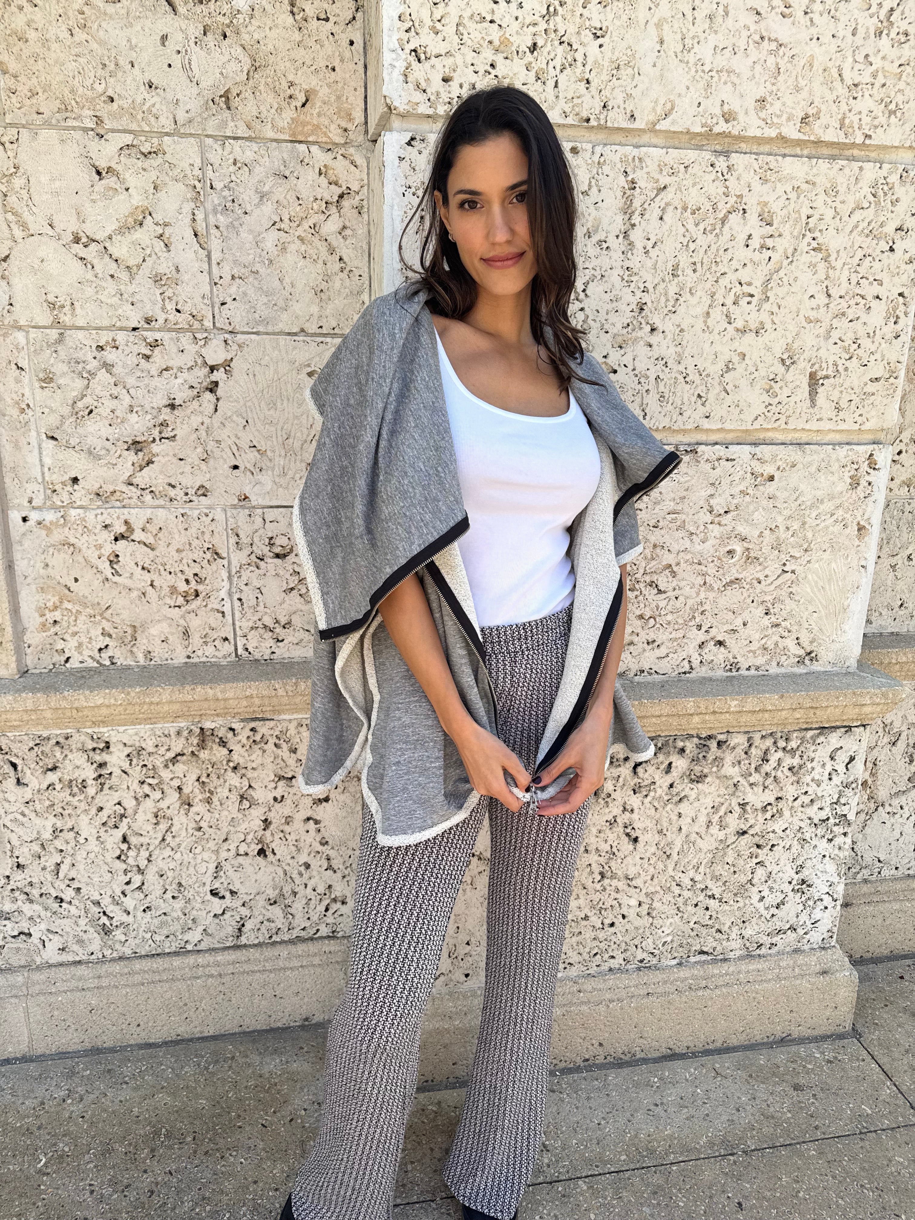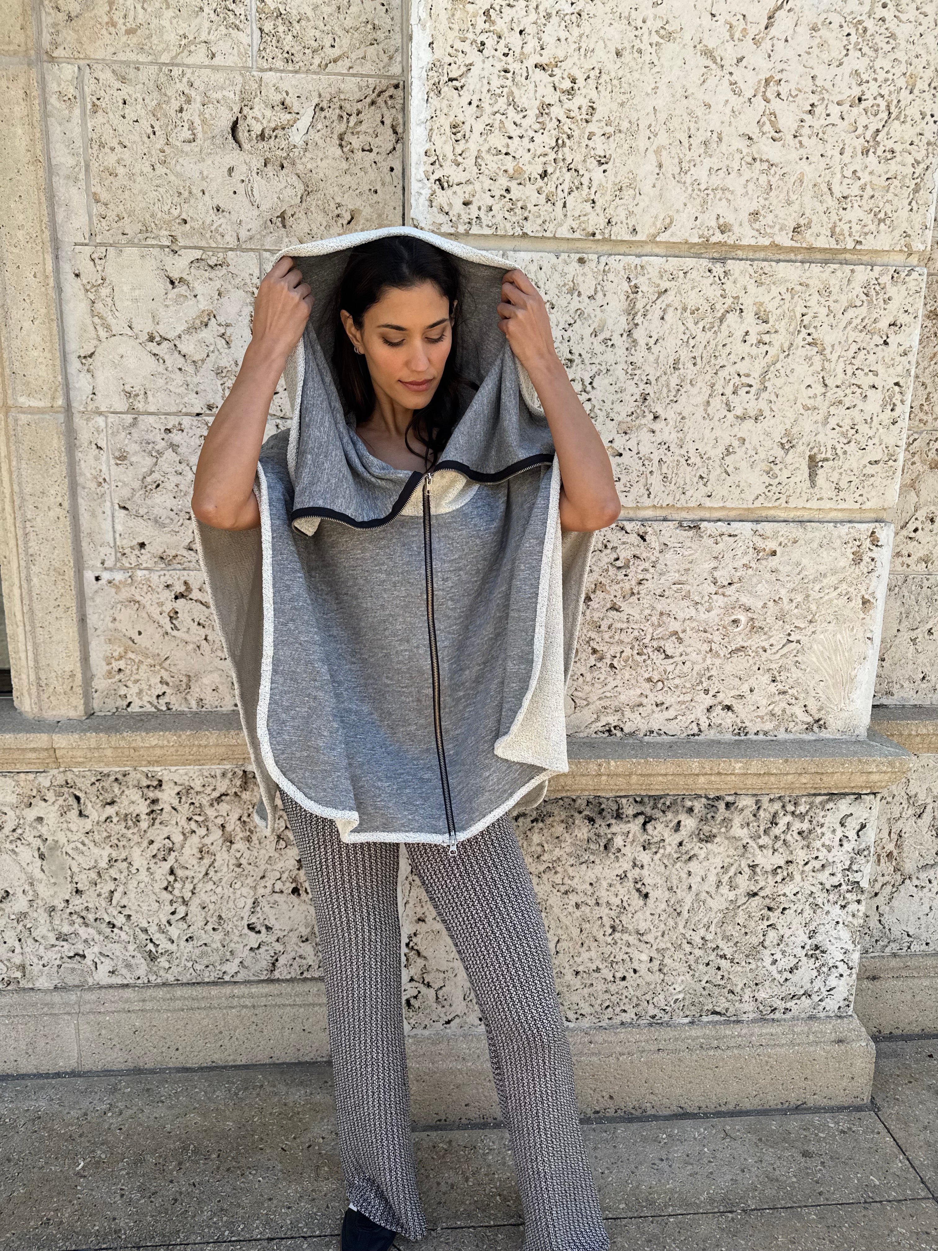Discover the Gray Sweatshirt Zipper Hoodie Ponch—Heidi Hess's signature design that seamlessly blends comfort with versatility. This innovative piece transforms effortlessly from a cozy hoodie to a draped shoulder wrap to an elegant scarf, adapting to your lifestyle and mood. Crafted with luxurious softness, the dual zipper design adds contemporary flair while enhancing functionality. Whether you're traveling, relaxing at home, or stepping out in style, this multifaceted essential offers endless styling possibilities. Experience the sophistication of a garment designed to move with you—wear it your way.
